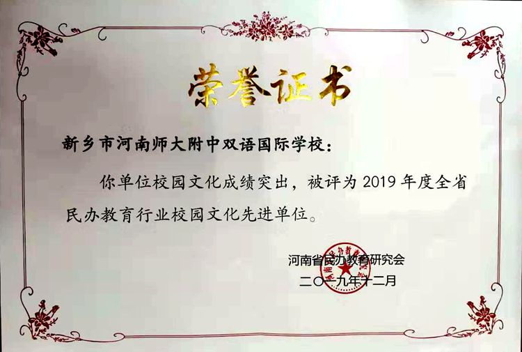 會(huì)上,我校被表彰為2019年河南省民辦教育行業(yè)特色辦學(xué)先進(jìn)單位、河南省民辦教育行業(yè)校園文化先進(jìn)單位。